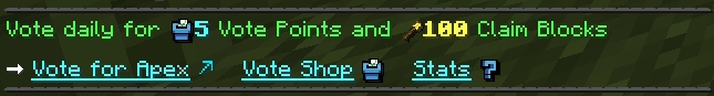 Access our voting webpage using the following link, or by running the /vote command in-game and clicking "Vote for Apex."