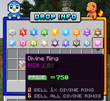 Drops are type specific drops that are obtained from defeating Pokémon, some drops are rarer than others and will sell for more in the /drops menu. Certain drops are also used in different crafting recipes across the server.
